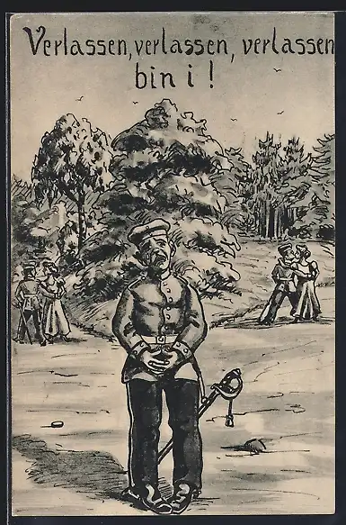 AK Soldat in Uniform beklagt dass er verlassen ist