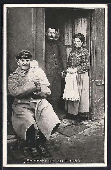 AK Soldat in Uniform mit Baby, Er denkt an zu Hause