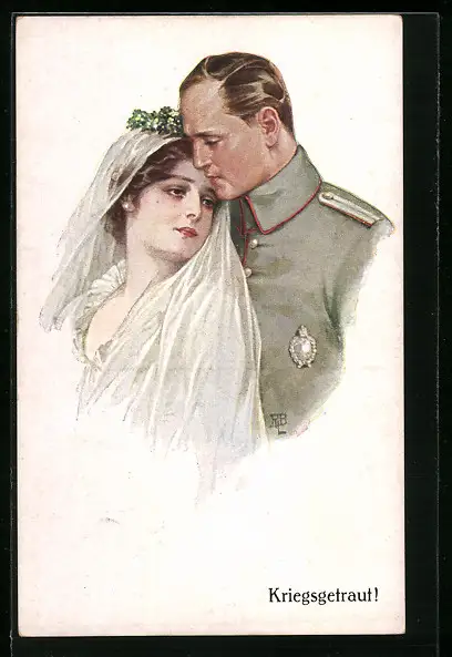 AK Soldat in Uniform mit Braut, Soldatenliebe