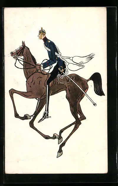 AK Soldat in Uniform mit Degen zu Pferde