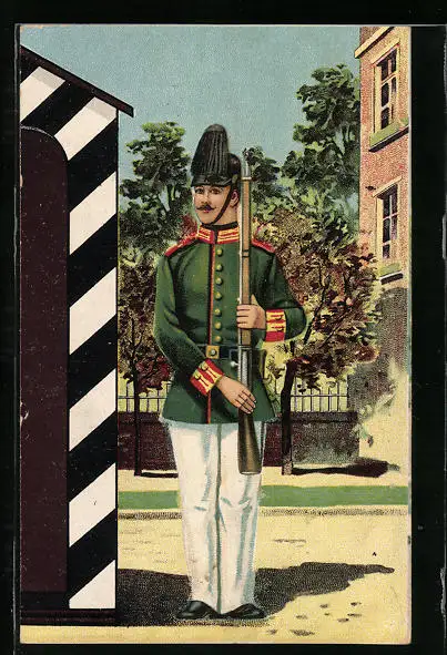 AK Soldat in Uniform mit Gewehr am Wachhäuschen