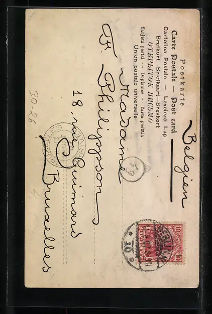 alte Ansichtskarte, gelaufen 1907, Eckknicke oben, guter Zustand
