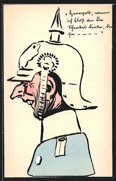 AK Soldat in Uniform mit Pickelhaube und Geiernase