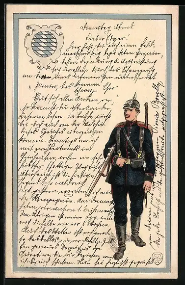 AK Soldat in Uniform mit Pickelhaube und Gewehr