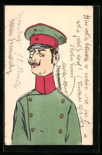 AK Soldat in Uniform mit Schirmmütze und Monokel