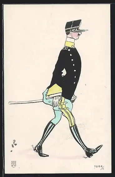 AK Soldat in Uniform mit Schirmmütze & Schwert