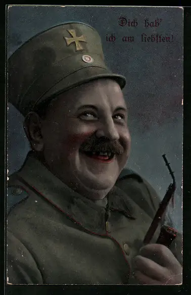 AK Soldat in Uniform mit Tabakspfeife, Rauchen