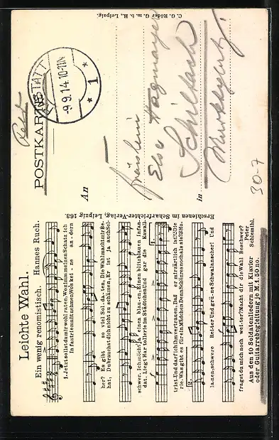 AK Soldat in Uniform mit Würsten, Leichte Wahl, Lied mit Noten