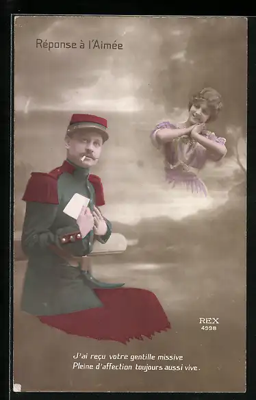 AK Soldat in Uniform mit Zigarette liest Brief seiner Frau
