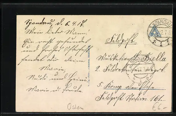 alte Ansichtskarte, gelaufen 1917, guter Zustand