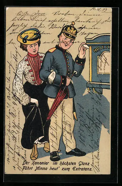 AK Soldat in Uniform und Minna werfen einen Brief ein