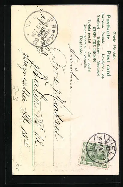 alte Ansichtskarte, gelaufen 1904, Eckknick re. oben, minimaler Einriss re. oben, guter Zustand