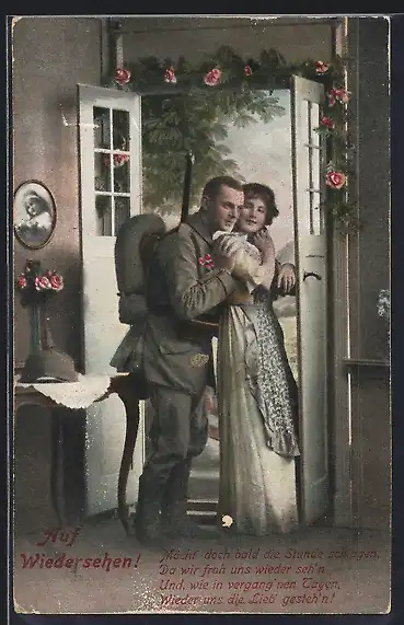 AK Soldat in Uniform verabschiedet sich von seiner Frau