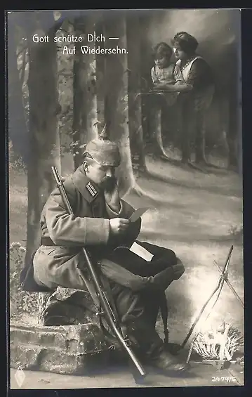 AK Soldat mit Pickelhaube liest einen Feldpostbrief
