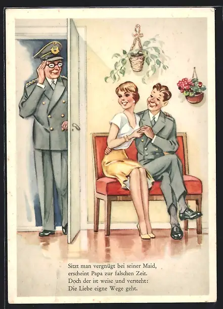 AK Soldat mit seiner Liebsten wird vom Vater überrascht