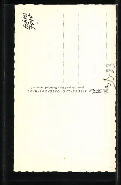 Personenbezogene Daten auf der Rückseite der Karte wurden durch blauen Textmarker unkenntlich gemacht. Die blauen Stellen sind auf die Vorderseite durchgeweicht und wirken sich negativ auf das Postkartenfoto aus