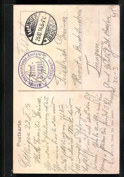 alte Ansichtskarte, gelaufen 1914 als Feldpost, Eckknick unten li., guter Zustand