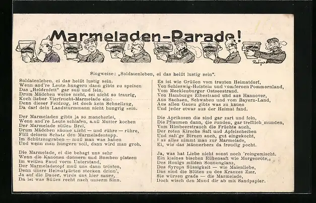 AK Soldaten bei der Marmeladen-Parade, mit Liedtext
