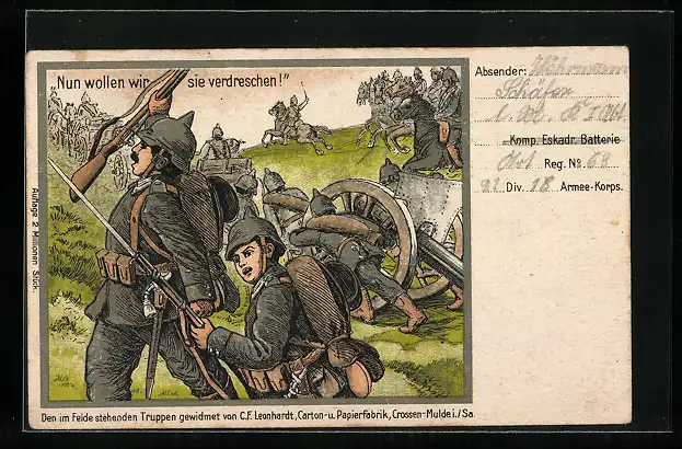 AK Soldaten beim Angriff - Nun wollen wir sie verdreschen !, Propaganda 1. Weltkrieg