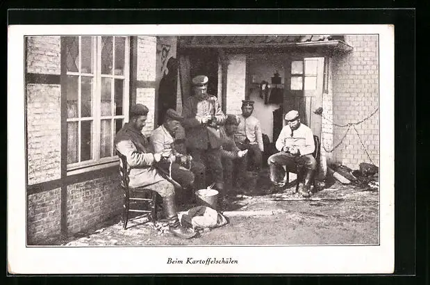 AK Soldaten beim Kartoffelschälen, 1. Weltkrieg