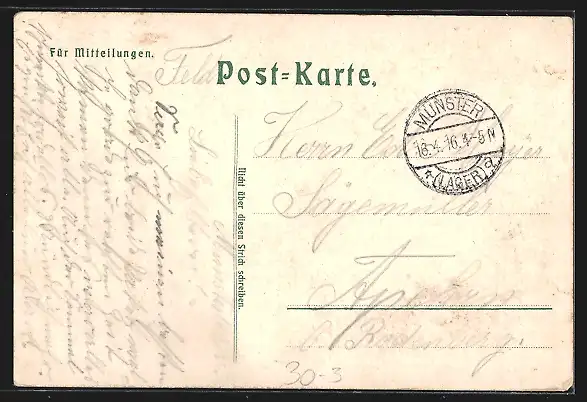alte Ansichtskarte, gelaufen 1916, Eckknick oben re., guter Zustand