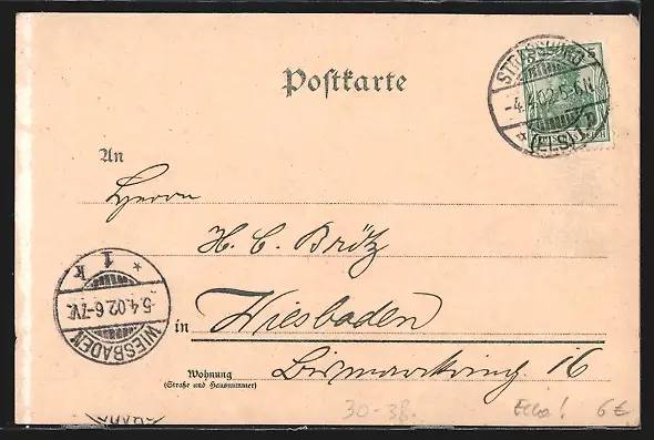 gelaufen 1902, rückseitig Klebe- und Papierreste, Eckknicke li. oben u. re., guter Zustand