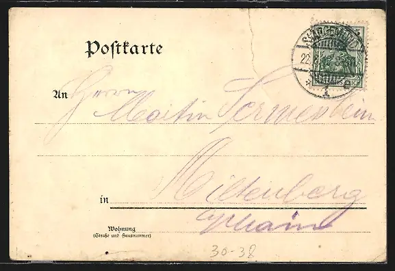 gelaufen 1910, Eckknicke li., Bugspur oben mittig, guter Zustand