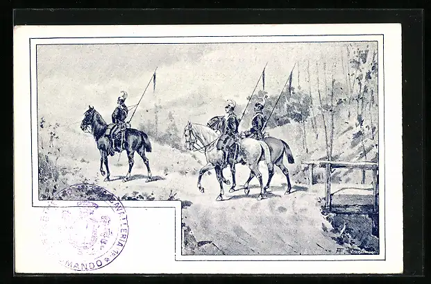 AK Soldaten der Kavallerie in Uniform zu Pferde