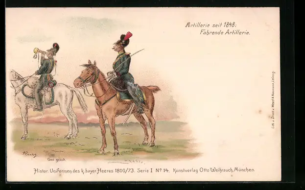 AK Soldaten der fahrenden Artillerie in Uniform zu Pferde