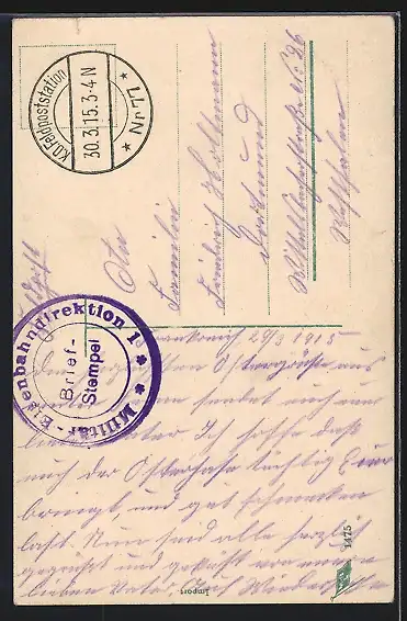 gelaufen 1915, minimaler Einriss re. oben, guter Zustand