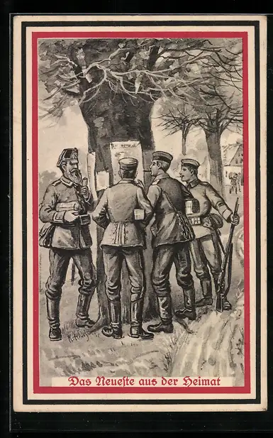AK Soldaten lesen einen Anschlag am Baum, 1. Weltkrieg
