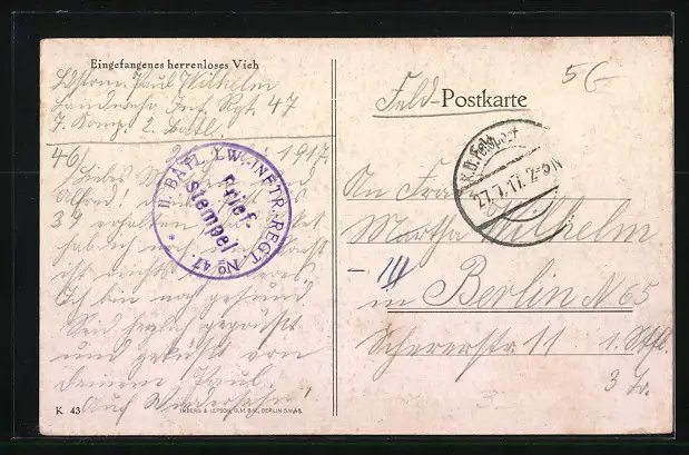 alte Ansichtskarte, gelaufen 1917, guter Zustand