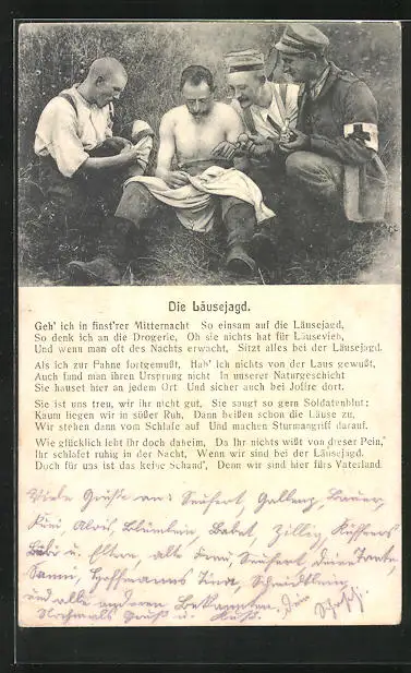 AK Soldaten suchen ihre Kleidung nach Läusen ab