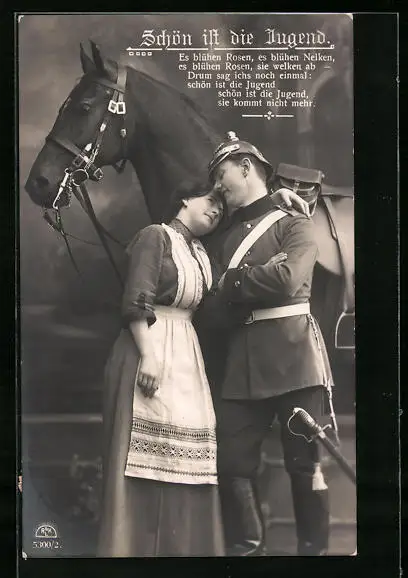 AK Soldatenliebe, Gattin umarmt Soldaten