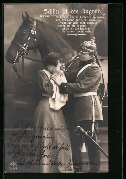 AK Soldatenliebe, Soldat tröstet seine trauernde Frau