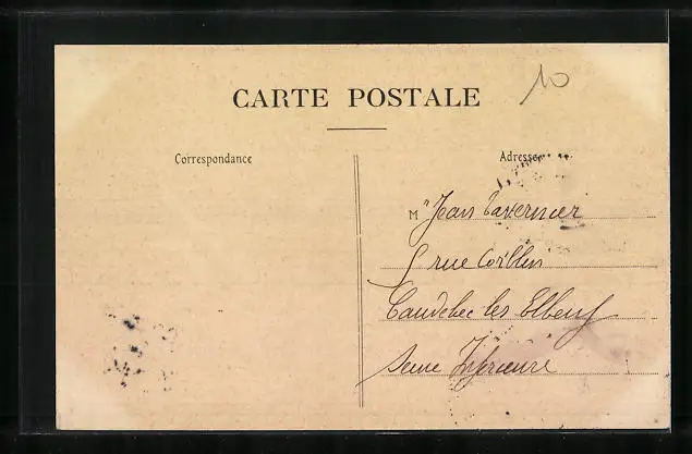 Personenbezogene Daten auf der Rückseite der Karte wurden durch blauen Textmarker unkenntlich gemacht. Die blauen Stellen sind auf die Vorderseite durchgeweicht und wirken sich negativ auf das Postkartenfoto aus