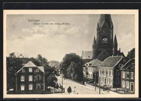 AK Solingen, Cölner Strasse mit evang. Kirche