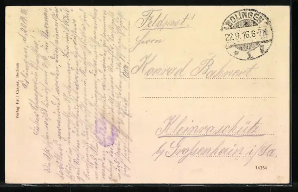 alte Ansichtskarte, gelaufen 1916, Eckknick unten re., guter Zustand