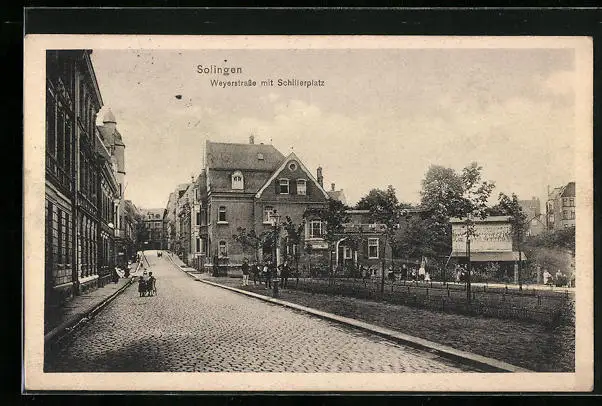 AK Solingen, Weyerstrasse mit Schillerplatz