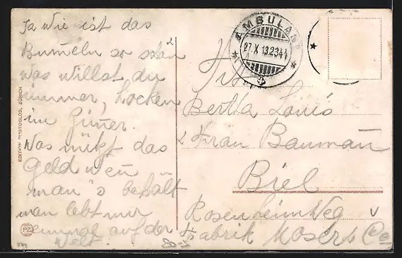 gelaufen 1913, Briefmarke entfernt, guter Zustand