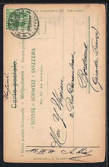 gelaufen 1908, Eckknicke re. oben u. li., Bugspur re. oben, guter Zustand