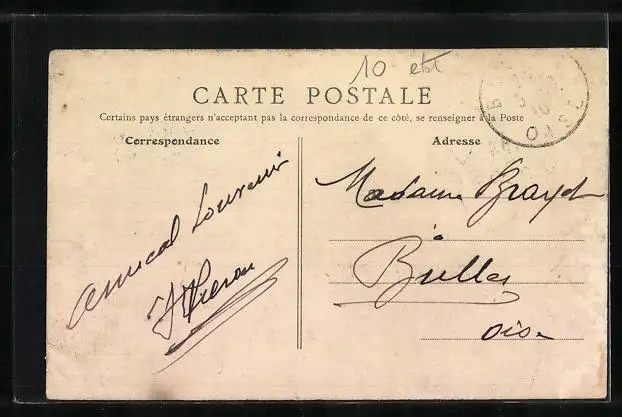 Personenbezogene Daten auf der Rückseite der Karte wurden durch blauen Textmarker unkenntlich gemacht. Die blauen Stellen sind auf die Vorderseite durchgeweicht und wirken sich negativ auf das Postkartenfoto aus