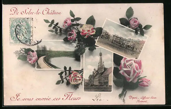 AK Solre-le-Chateau, verschiedene Ortsansichten, Rosenblüten