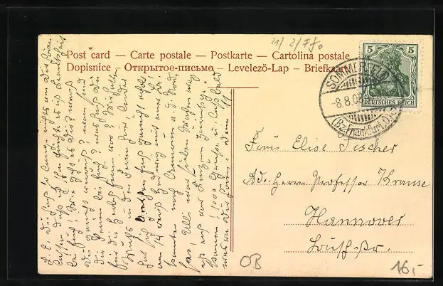 alte Ansichtskarte, gelaufen 1908, guter Zustand