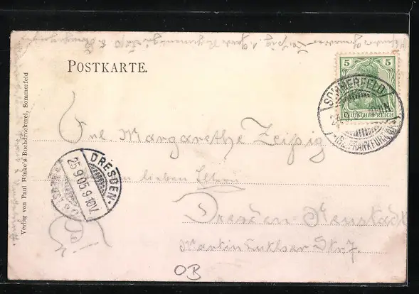 alte Ansichtskarte, gelaufen 1905, guter Zustand