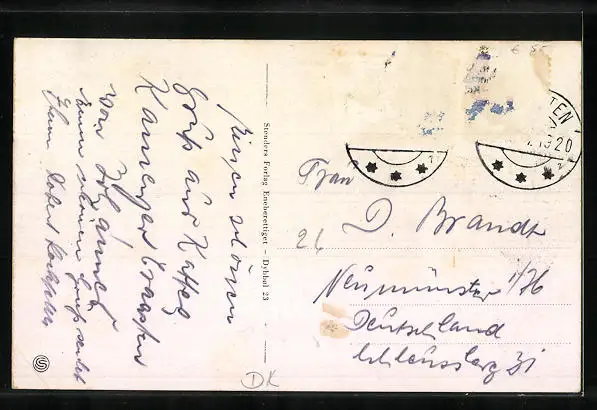 alte Ansichtskarte, gelaufen, Briefmarke entfernt, Eckknick unten rechts, guter Zustand