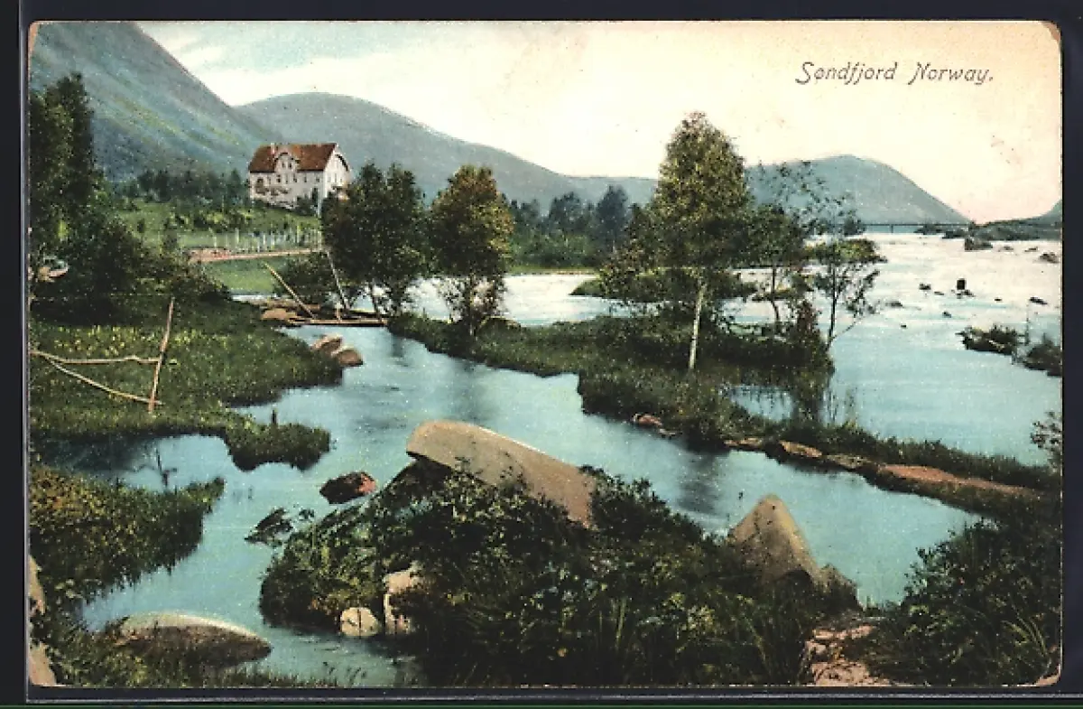 AK Sondfjord, Wasserpartie mit Bergpanorama