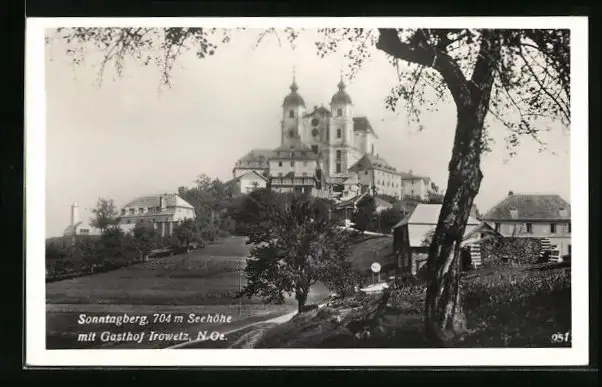 AK Sonntagberg, Teilansicht mit Kirche und Gasthof Irowetz