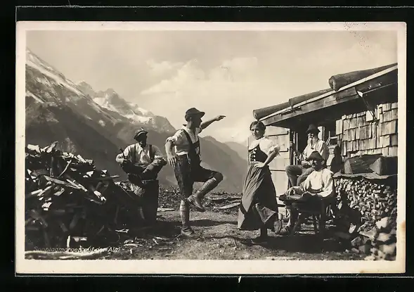 AK Sonntagmorgen auf der Alm, Schuhplattel-Tanz