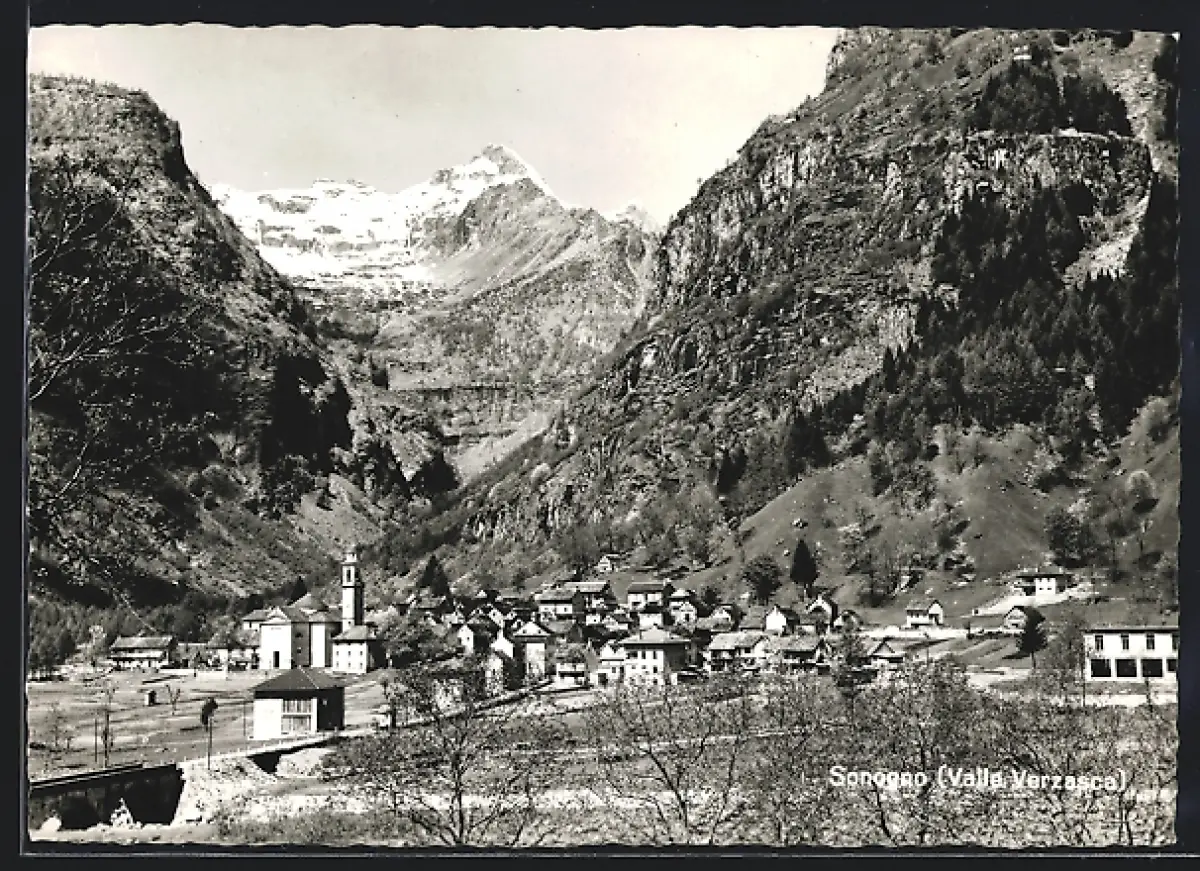 AK Sonogno /Valle Verzasca, Panorama & Monte Zucchero